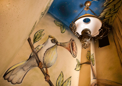 In het dames toilet van Galerie Cafe Leidse Lente maakte Tim Juffermans de installatie De Buitenste Binnen Tuin. Een mystieke binnentuin in het Haagweg 4 gebouw te Leiden waar je het toilet kan bezoeken terwijl je naar de sterren kijkt en omringt wordt door vreemde, surrealistisch wezens.